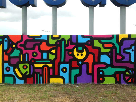 Mural para el Parque Centenario Laguna de Chapulco, ubicado entre calle 12 Sur y Unidad Habitacional San Jorge en Puebla, Pue. Aerosol sobre muro de 22x2m. aprox.